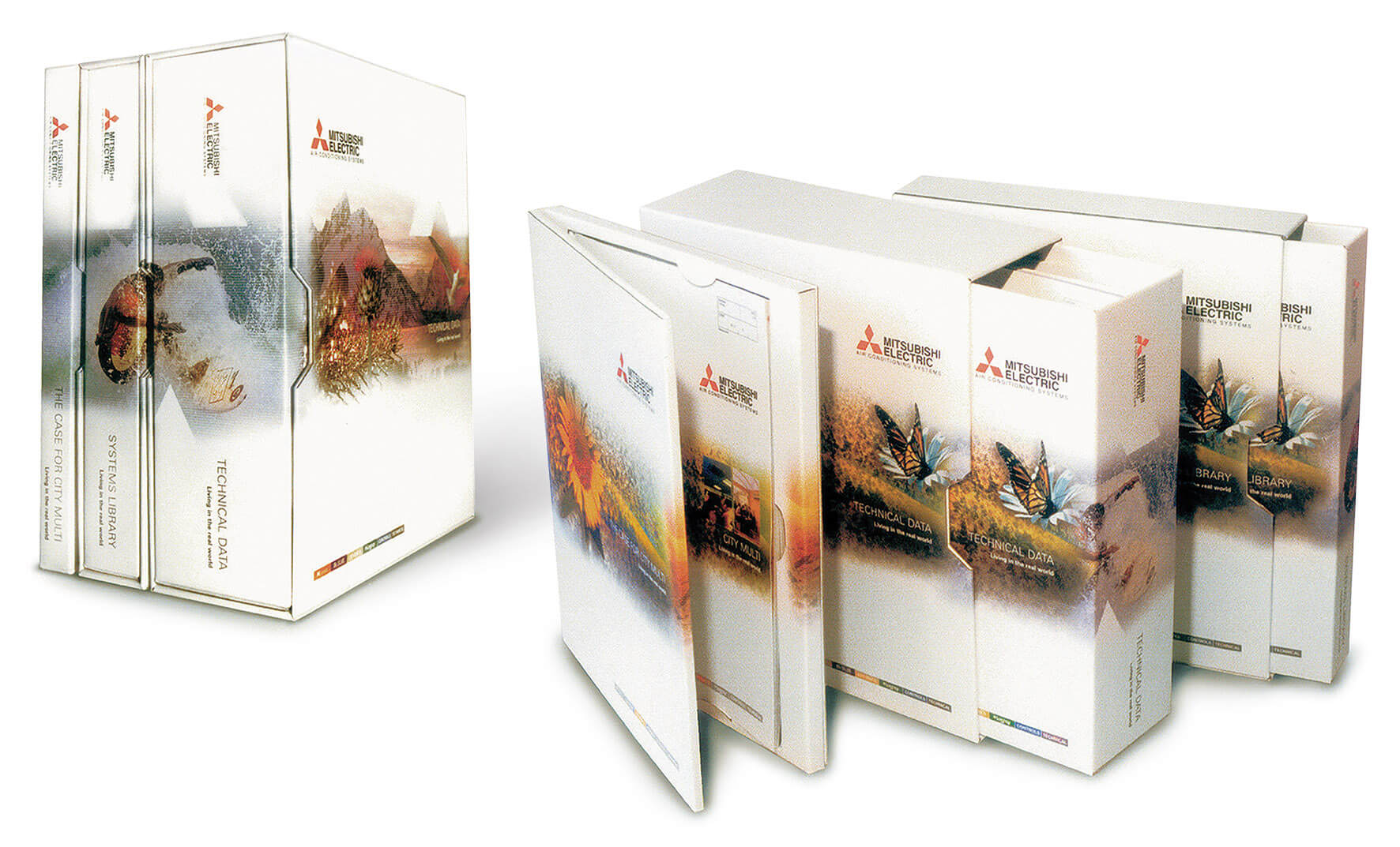 The set of information collated featuring the entire range of air conditioning product range from Mitsubishi was created not just as printed literature, but as a set of DVD’s containing assets suitable for specifiers to use in their own presentation to clients.